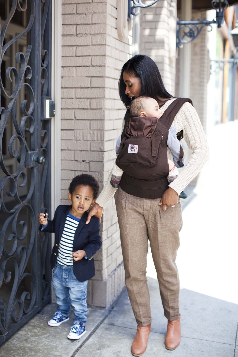 Az ERGO babahordozóval a hosszabb ideig tartó hordozás sem megterhelő, mert a baba testsúlya a vállakon és a csípőn oszlik el, ami kíméli a hordozó személy gerincét.